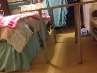 I’ve laid my board track side down on a blanket on the bed. This will cushion the force I will need to apply to screw in the metal disks for the legs and ultimately protect the track. Hopefully you’ll not have to do this if you’re building your base-board-IKEA-solution first.
