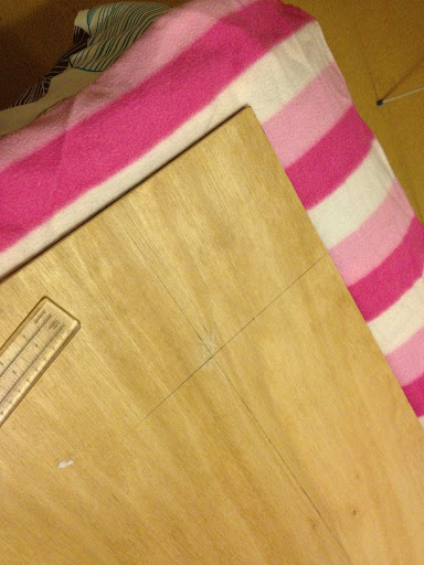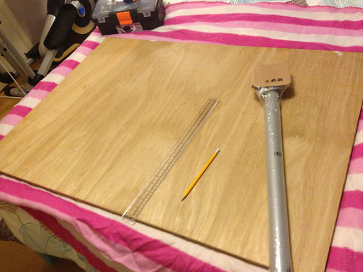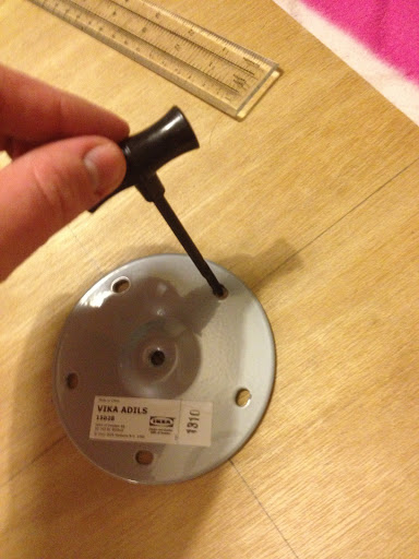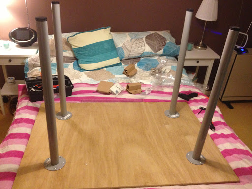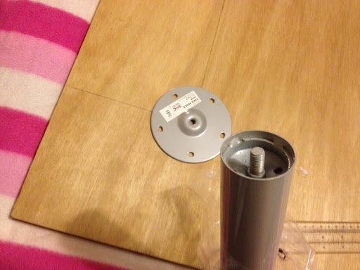 I’ve laid my board track side down on a blanket on the bed. This will cushion the force I will need to apply to screw in the metal disks for the legs and ultimately protect the track. Hopefully you’ll not have to do this if you’re building your base-board-IKEA-solution first.