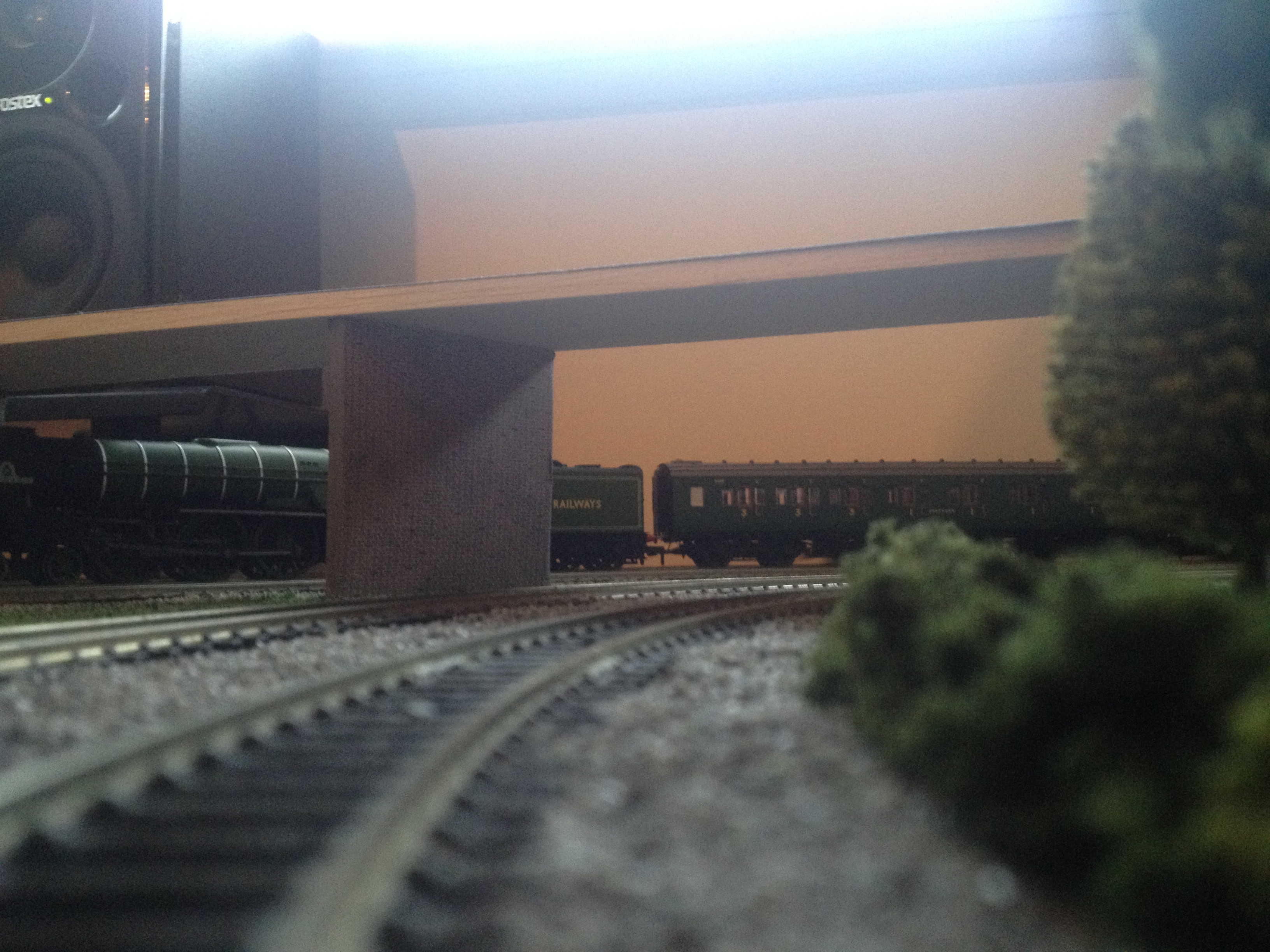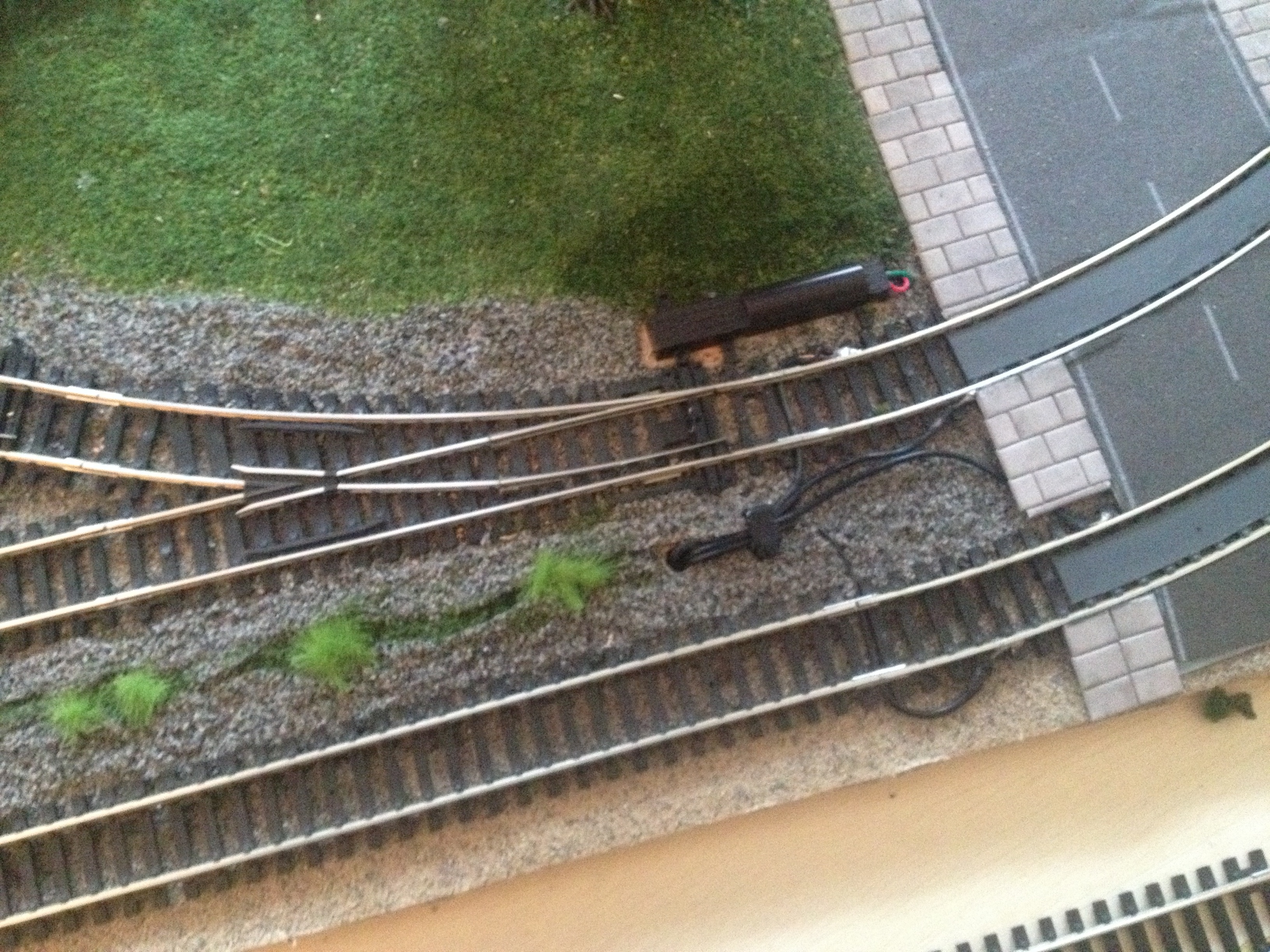 So why didn’t I do that? Firstly, I didn’t really think about it. Which is a shame, because being able to see the full oval all the time sort of bugs me because it’s less realistic. BUT we’ll get to that shortly… Secondly (and this makes up for my previous lack of vision), I really need access to the full layout. This is because space is at a premium and the rear of the layout is quite hard to get to as it is. If it were hidden behind, or even under, scenery it would be hard for me to carry out maintenance and various operational manoeuvres (junctions and points exist at the back of the layout).