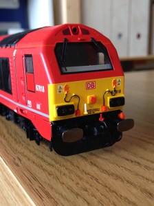 I’ve opted for the high end version in DB Schenker Red. You can also pick this model up in Wrexham & Shropshire two tone grey (where you’ll also find Mrk III coaches and a DVT – also with lights – sold separately to complete the set), as well as in a rather smart plain blue Arriva Trains livery.