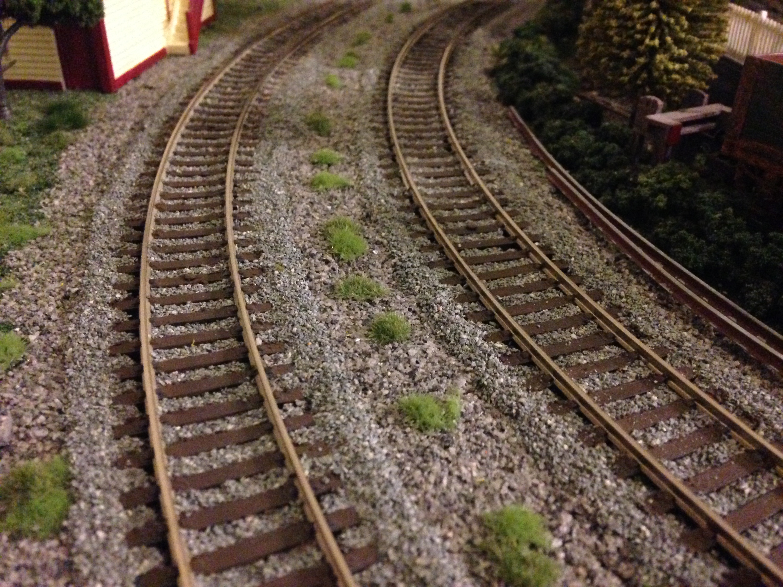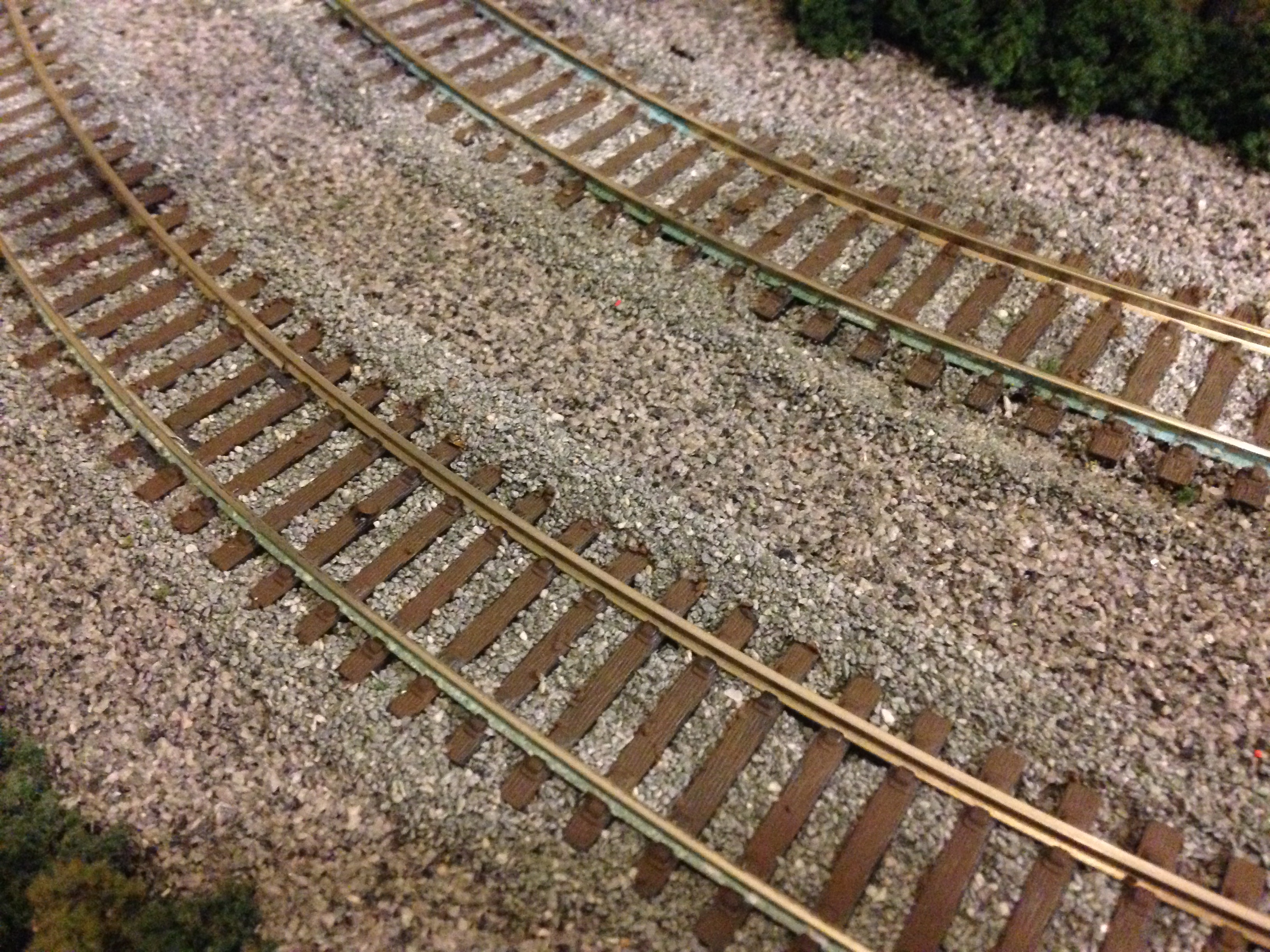 You may notice that there are two types of ballast here. The reason behind this dates back to the expansion project I undertook last year when I happen to use a different type of ballast on the outer loop. For consistency purposes I’ve re-ballasted the entire layout using this new mixture.