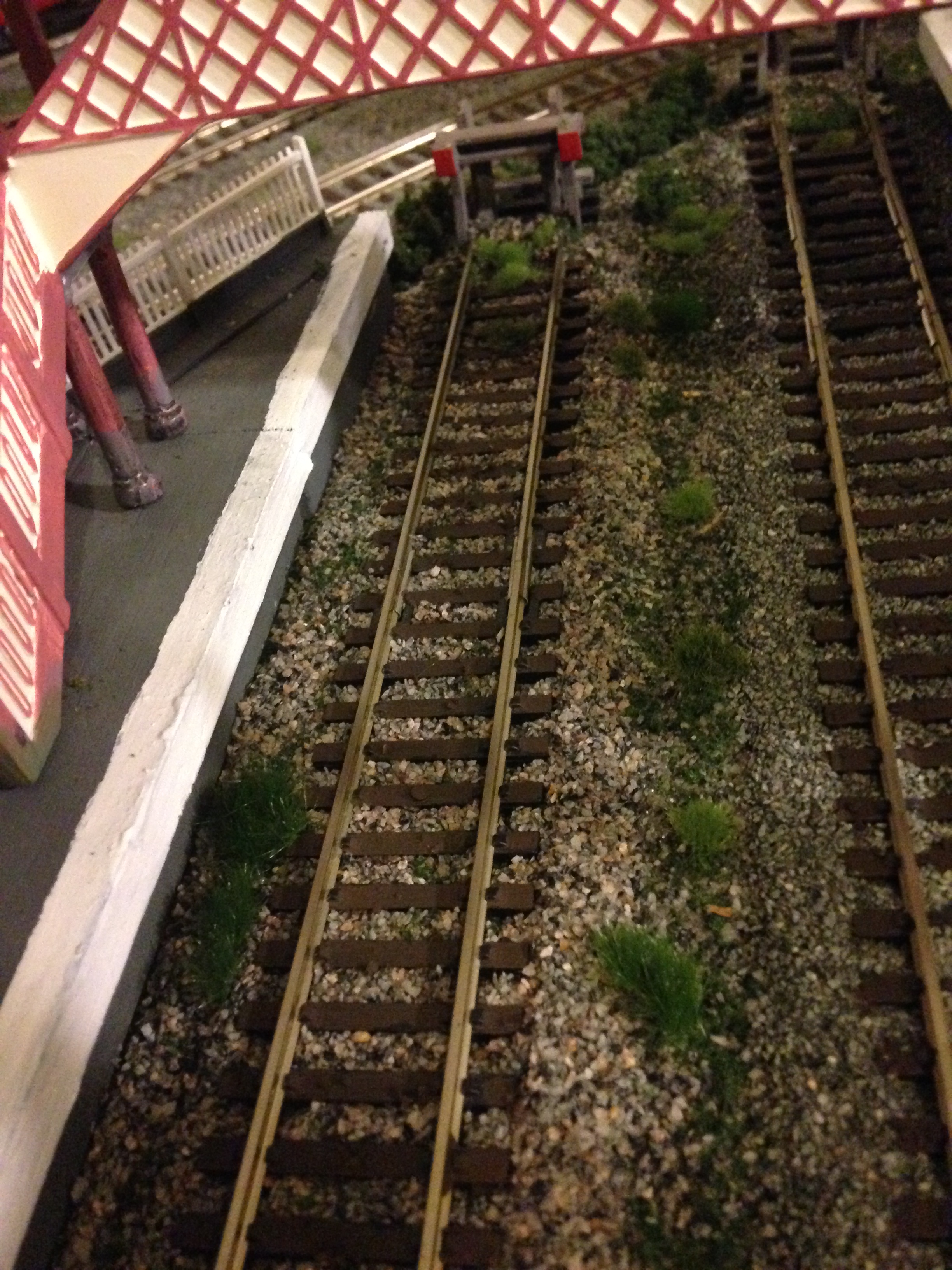 Next up… you’ll remember I recently updated the station layout, giving it a 2nd platform. It looked like this (note also the comparison in ballasting)…