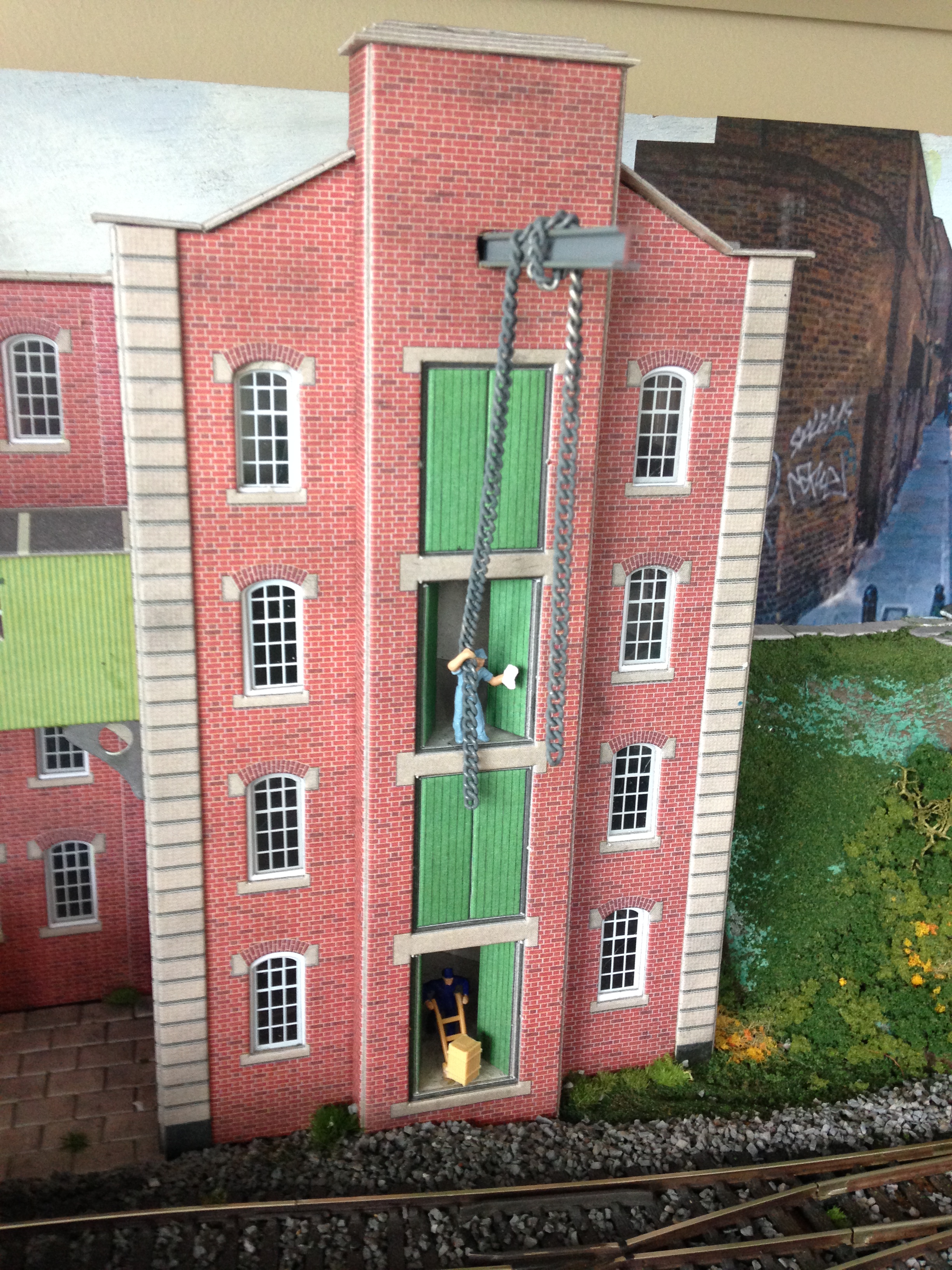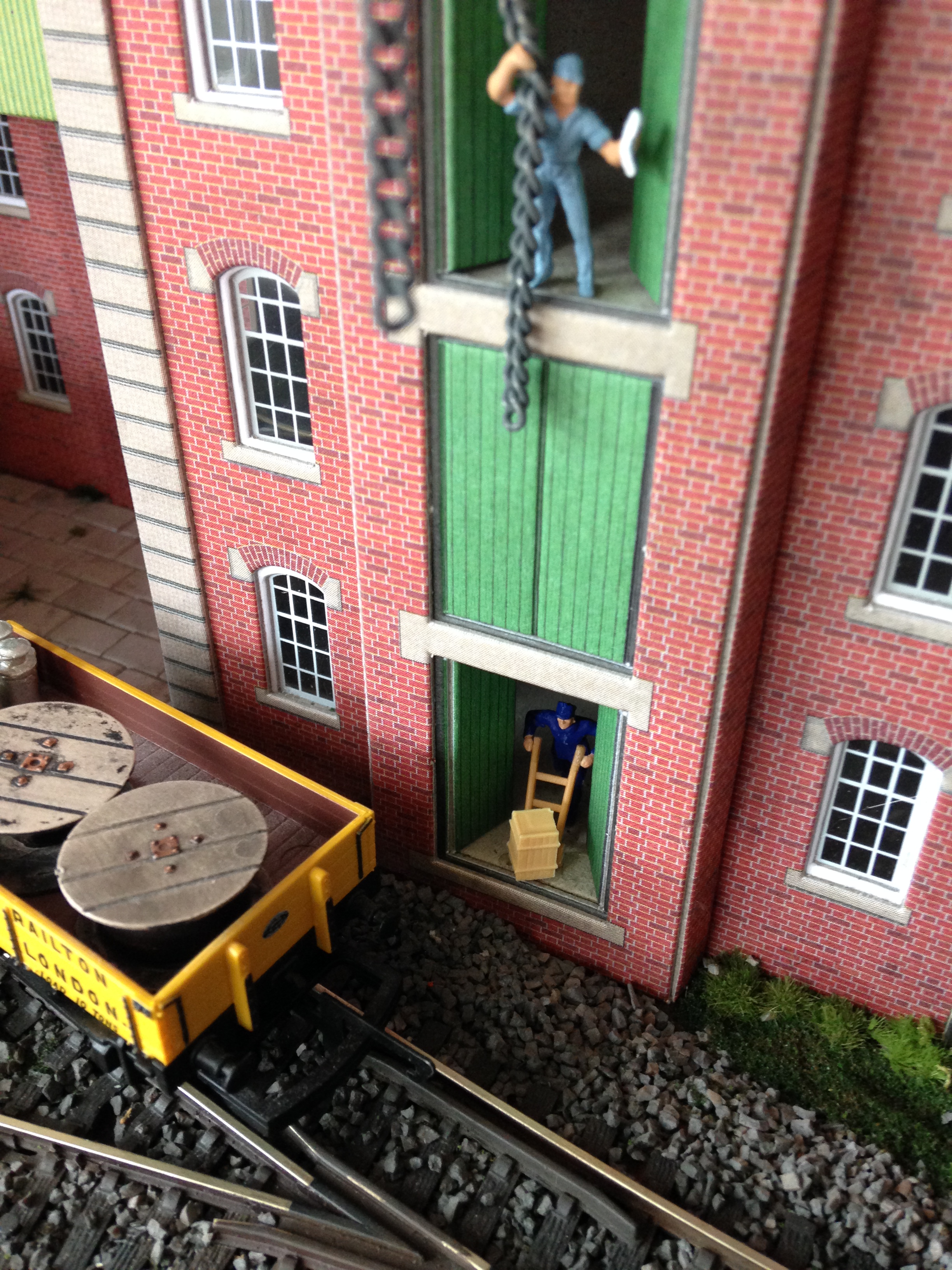 The figures are set 14016 (Delivery Men) from Preiser and cost me £7.25. The chain was cut from an unwanted necklace and was painted a dull grey.