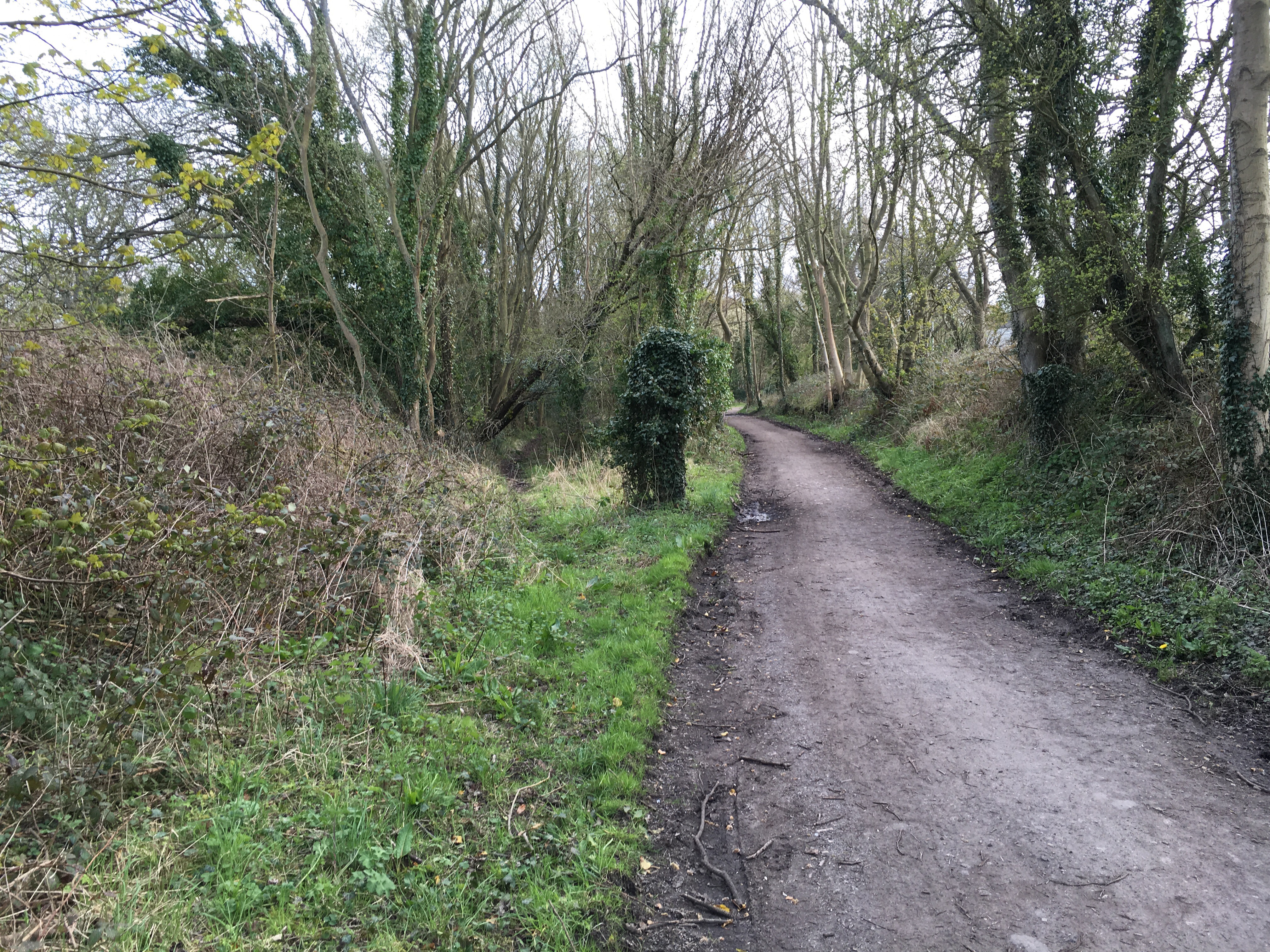 It’s here we find a very tangible reminder that this is a former railway line. It’s not clear whether these sleepers were left in situ when the route was dismantled or whether they were arranged like this when the cycle path was opened. They are offset from the main route, so if they are original it would support my quary siding-theory.