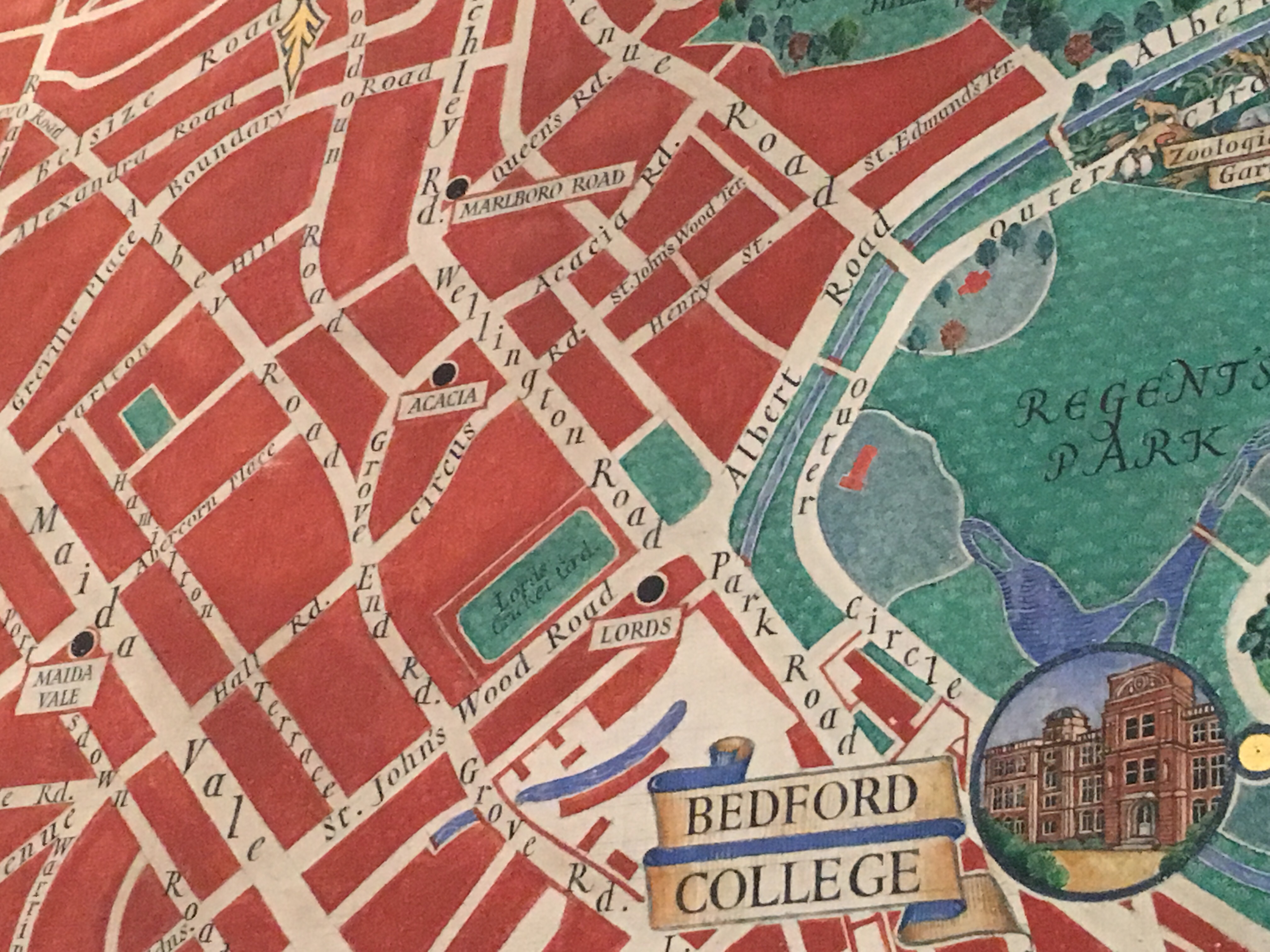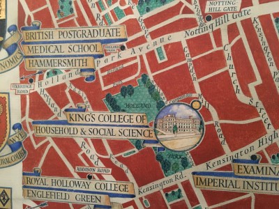 It maps the various colleges that were part of the university at the time. It also shows various other London landmarks and features main-line stations and tube stops. Even without being told it’s age you can certainly have a guess at back dating the piece from the station names which include Strand, Lords and Uxbridge Road.