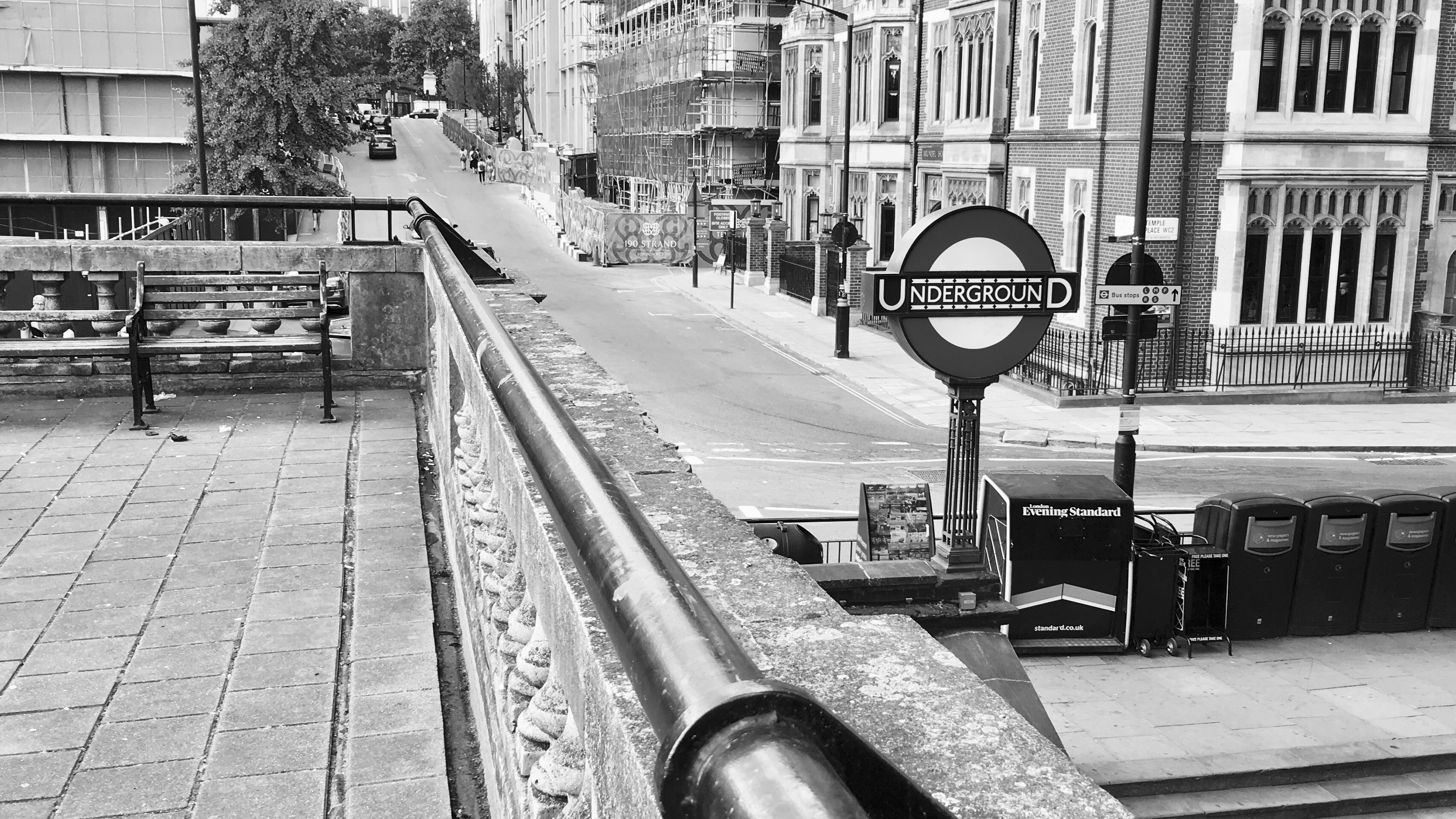 I can’t help but feel that Temple is an opportunity missed. There’s certainly scope for either TfL or Westminster Council (whoever actually owns the roof) to open up a nice landscaped garden, or even make use of the terrace as an events or arts space. Who knows perhaps there’s even money to be made here. I’m surprised Bar Salsa, the drinking establishment occupying the western end of the station, hasn’t got their hands on it and done something similar.