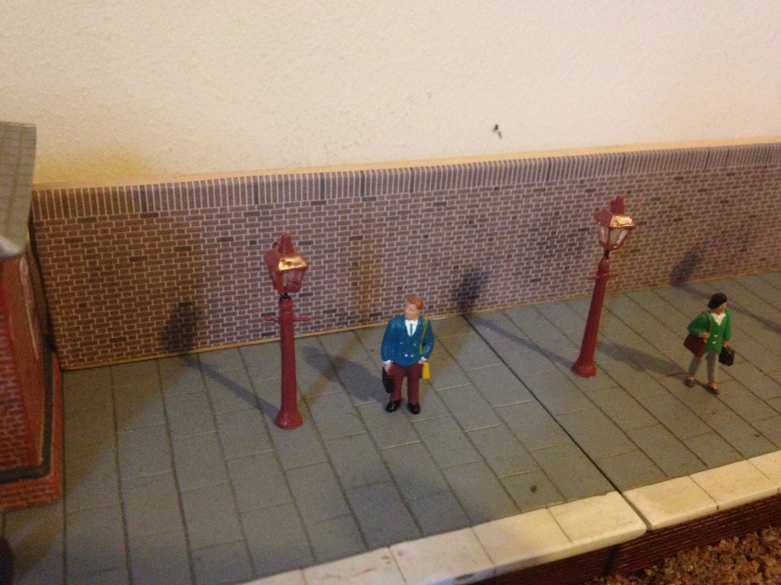 For the red-brick-Manchester walls I’ve simply used sheets of printed pattern. Again, picked up from my favorite model shop for a few pence. To apply the sheets to the wood I created a very watery PVA mix, wallpaper paste like, and this worked perfectly – although it was ever so tricky to stick into place, especially under the bridge. You could of course consider printing your own, or even painting, but this method really is very cheap and easy to achieve something very aesthetically pleasing. I would however recommend sticking the texture sheets onto the wood first and then assembling any structures 2nd…