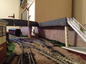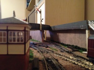 I’ve added two semaphore signals, the one on the right is a station starter for the main or right hand siding; the one on the left services the headshunt.