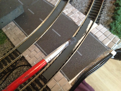 I opted to paint the centre pieces rather than cut out further fiddly pieces of roadway.