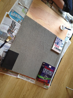After repeating the process on a larger scale this is what one of the boards looked like. You’ll notice the creases in the scenic mat are more obvious here. I think this had something to do with the glue still being quite wet, this eventually evened itself out after the second layer of glue and more paper-patting.