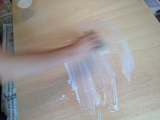 Eventually we will add a second coat of glue on top of the scatter we have just laid – however I found it useful to pat down the scatter using either my hand, the back of the spoon, or even more effective – a folded up piece of paper. Don’t be too forceful or you’ll end up getting the scatter stuck to the paper, just lightly press down and this helps the scatter to stick to the board as well as helping it to spread evenly.